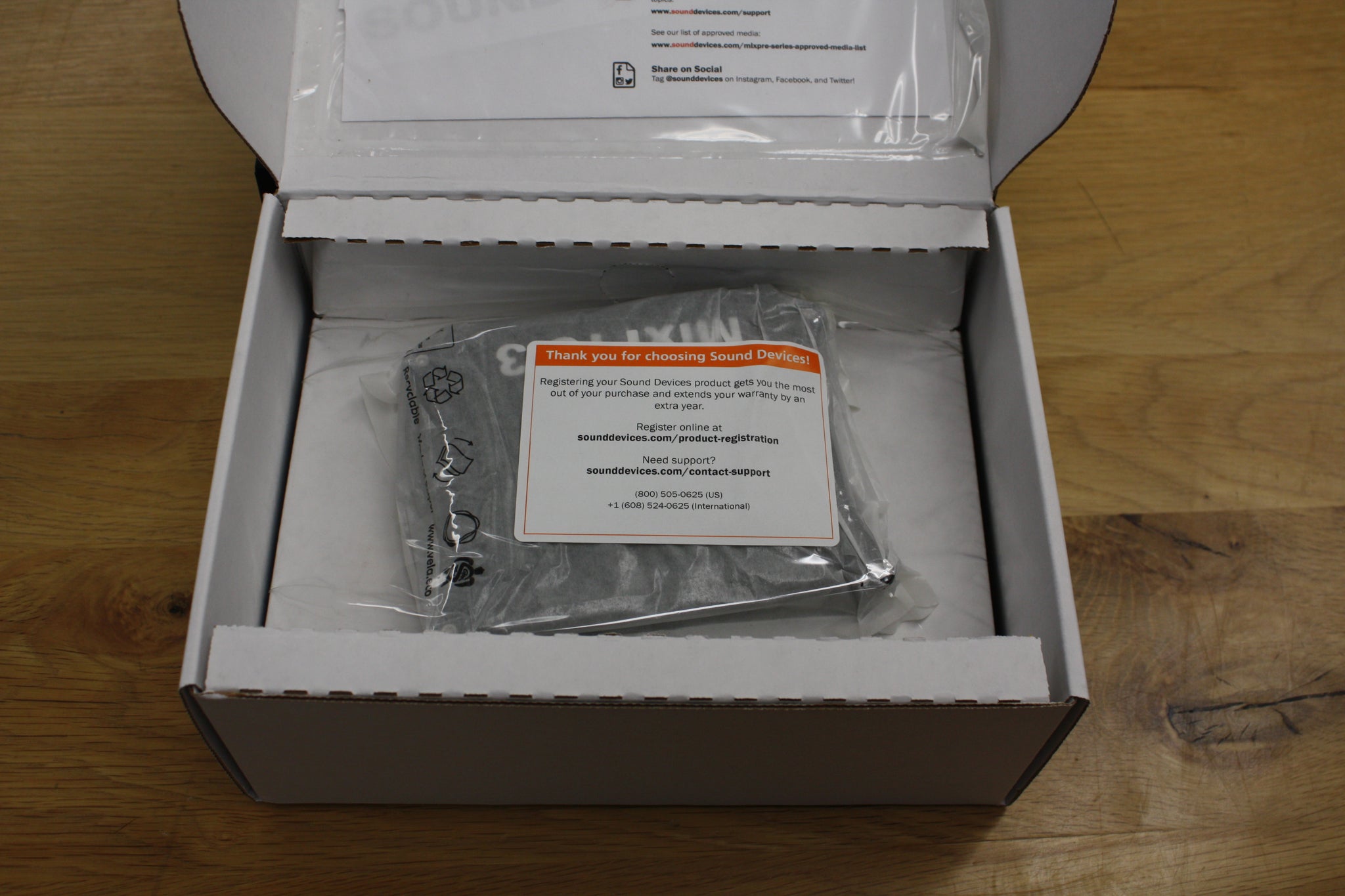 Portable multitrack audio mixer-recorder and USB audio interface. 3 XLR mic/line inputs. 32-bit float capable; 5 tracks (3 ISO + stereo LR mix); SR up to 192 kHz; 3.5mm stereo output; internal LTC timecode generator on Aux In/Stereo Out; built-in Bluetooth for wireless control via Wingman app; USB-A for control surfaces, keyboards, and auto-copy to USB drive. Includes a MX-4AA Battery Sled (batteries not included), MX-PSU AC Power Supply, and USB-C to USB-C cable.