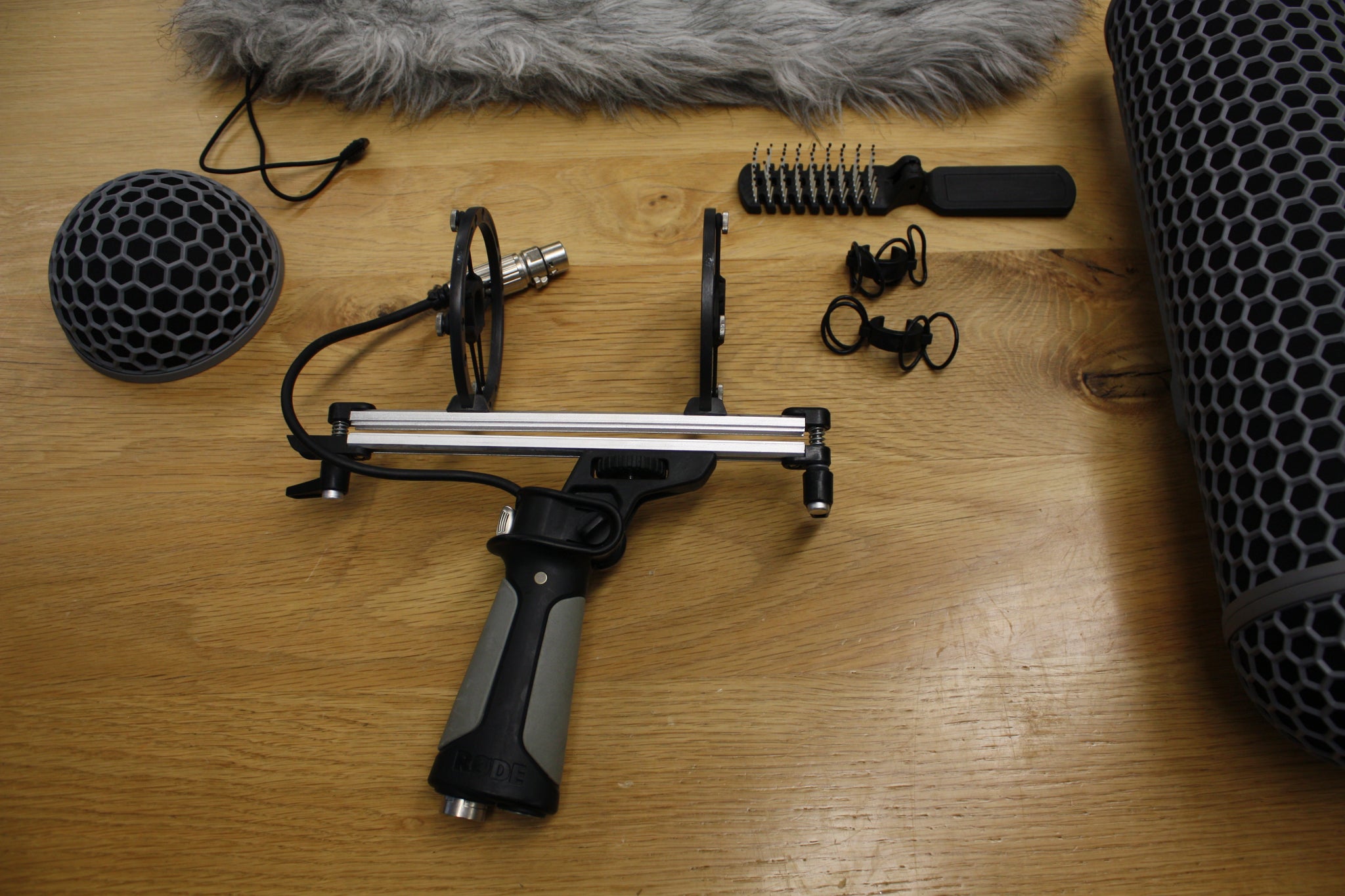 Comes with "Dead Wombat" windshield, brush, xlr patch cable and extra set of mounting rings
