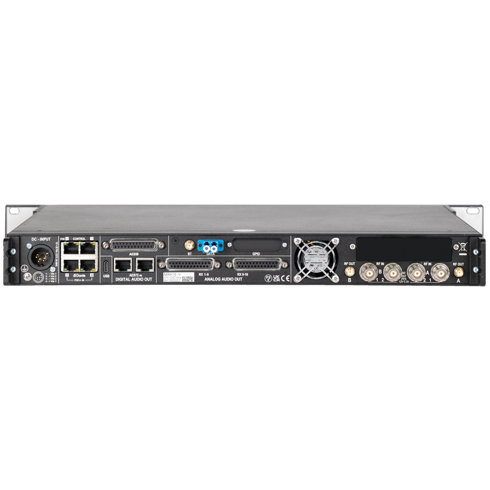 Up to 16 true diversity channels in a compact 19” 1U rack (4x MCR54 NOT INCLUDED)